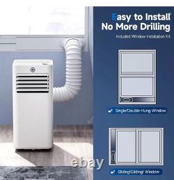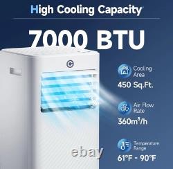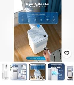 Air Conditioning Unit, 4-in-1 Powerful Portable Air Conditioner, Dehumidifier, Ventilation, Cooling Fan with Digital Display, 2 Fan Speeds, 24 Hour Timer Window Venting Kit for Room up to 219sq. Portable Air Conditioning, Powerful Air Cooling? Benefiting from the advanced air compressor, the portable air conditioners have a cooling capacity of up to 7,000 BTU, instantly lowering room temperature for rooms up to 219 ft3. Adjust the room temperate to create coolness and comfort in your bedroom, living room, office, basement, or workplace. 4-In-1 Multifunctional Air Conditioner Unit? To enhance your indoor air environment, we give two more roles to this air conditioner unit portable to play as a fan/dehumidifier. Drop the temperature to 16? When it gets hot, improve the indoor air circulation with two fan speeds, or dehumidify the indoor air to keep the humidity between 40% and 60%. Check the temperatures at a glance with a LED digital display showing the current temperature. A multi-function control panel and full-function remote control make your life more convenient; thus, you can easily set a timer, adjust the temperature value, and switch modes, whether getting close or far away.