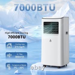 Air Conditioning Unit, Portable Air Conditioner with 4-in-1 Cooling & Fan & Dehumidifier & Sleep Mode Function, Air Conditioners with Digital Display & Remote Control, 24H Timer for Room up to 215 ft. Powerful 7000 Btu Cooling: This air conditioning unit utilizes an advanced air compressor, delivering powerful cooling with 7000 BTU capacity, suitable for rooms up to 215 square feet.