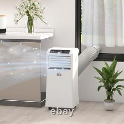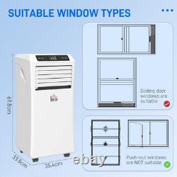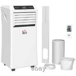 Cools, dehumidifies and fans over Two speeds, keeping you cool during different types of heat, with an LED display for easy control - Compact size to fit into smaller spots, with a tough outer body for durability - Four wheels on the base to move unit around easily - Removable air filter for easily cleaning so fresh air is circulated around - 24 hour timer, allows you to set to a specific time - ideal for when you want to put on at night - Automatically cut off when the tank is full - Restarts automatically if power cuts off unexpectedly - Sliding window kit included, assembly required Specifications: Specification: Item Name: Mobile air conditioner Brand Name: HOMCOM Power: 1003W Color: White Material: ABS Overall Dimension: 35.4W x 33.8D x 69.8H cm Net Weight: 23.6kg Suitable Using Space: 12-18? Max Cool: 9000Btu Input: 220-240V Refrigerant: R290 Dehumidifying Capacity: 24L/Day Noise:? 65dB(A) EER:A grade(>2.6) Battery: 2 x AA Battery (not included) Flat Pack: Yes Custom Label: 823-002V70 Package Includes: 1 x Mobile air conditioner 1 x Exhaust hose 1 x Hose connector 1 x Window kit adapter 1 x Remote control.