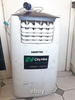 MASTER AC 1000E PORTABLE INDUSTRIAL AIR CONDITIONER CONDITIONING UNIT. Used, with cosmetic marks and scratches. One wheel unstable but moves ok. Working order - see video.