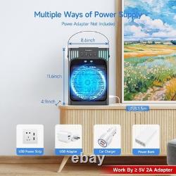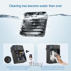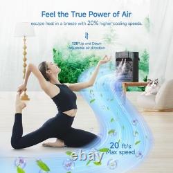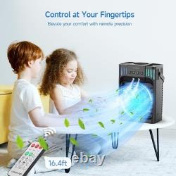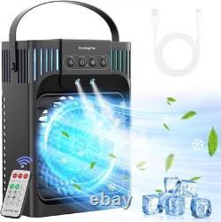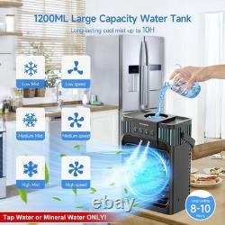 Portable Air Conditioner Cooling Fan, 1200Ml Mini Air Conditioning Unit with Remote, Quiet 3 Wind Speeds & Cool Mist, 2-8H Timer & 7 LED Light, Personal Air Cooler Fan for Room, Home, Office. Better cool begins with quieter sound. Acoustically designed airflow system hugely reduces noises from motor and fan. This mini air conditioner also adopts hyper-precision bearing to provide ultra quiet cooling at all speeds, not disturb your life, work or sleep. All-in-one airflow system combines with 2 misting humidification holes and a supercharged electric motor, delivering high-speed, brisk cool and refreshing airflow.