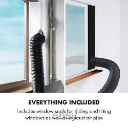 1 x exhaust air hose. The Klarstein Metrobreeze New York Smart 7k mobile air conditioner ensures clear, cool room air on hot summer days and noticeably improves the room climate. The powerful but economical compressor with 7000 BTU or corresponding 2.1 kW gives the air conditioner energy efficiency class A, suitable for continuous operation in rooms from 21 to 34 m² with a target temperature between 17 and 30 °C.